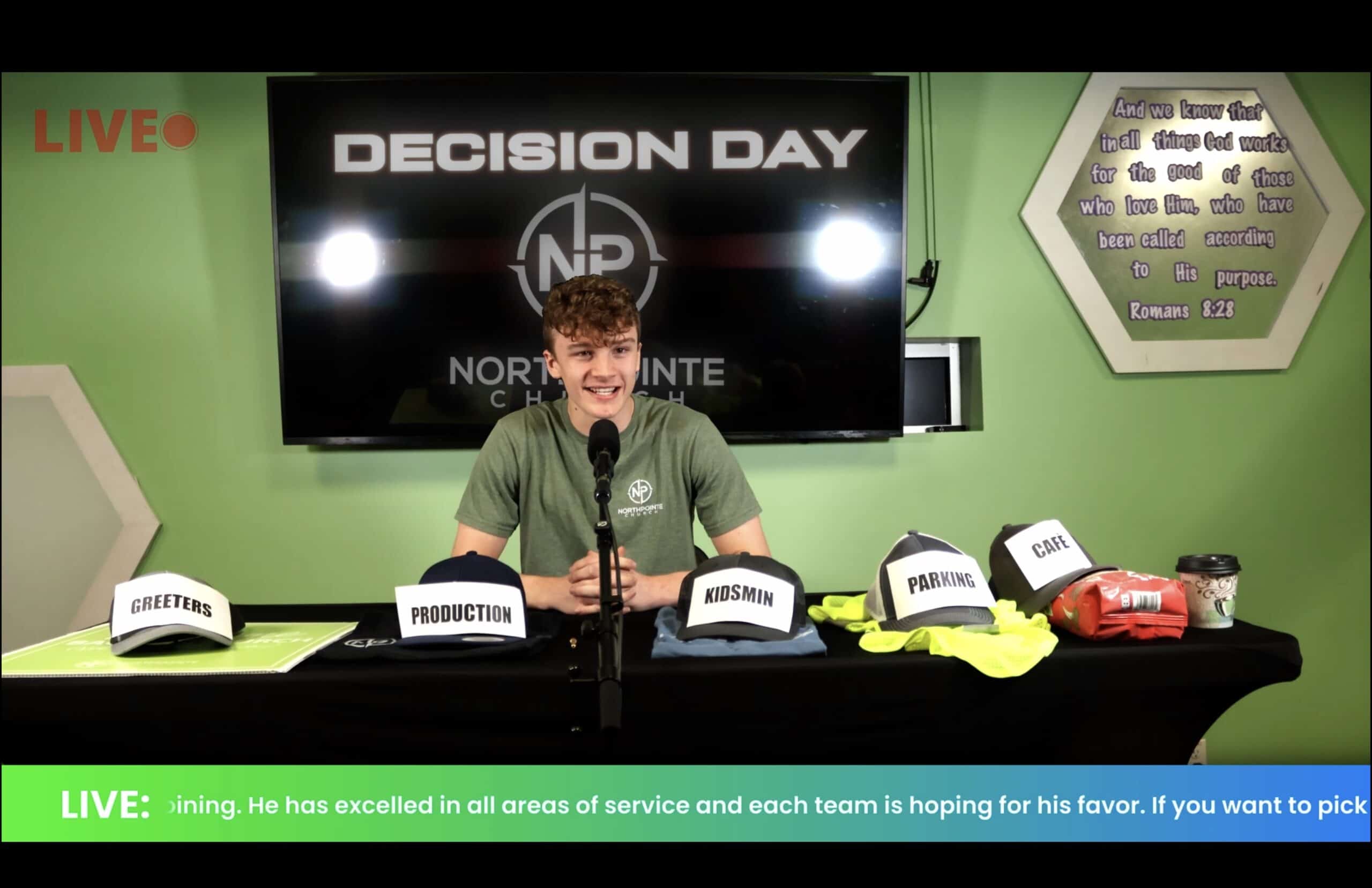 Live coverage of a young volunteer’s decision to commit to one of the available service teams. All the while, the hosts express the importance found in church volunteerism. This promo video, made in the style of a typical sports draft event, is meant to inspire and thank church volunteers.