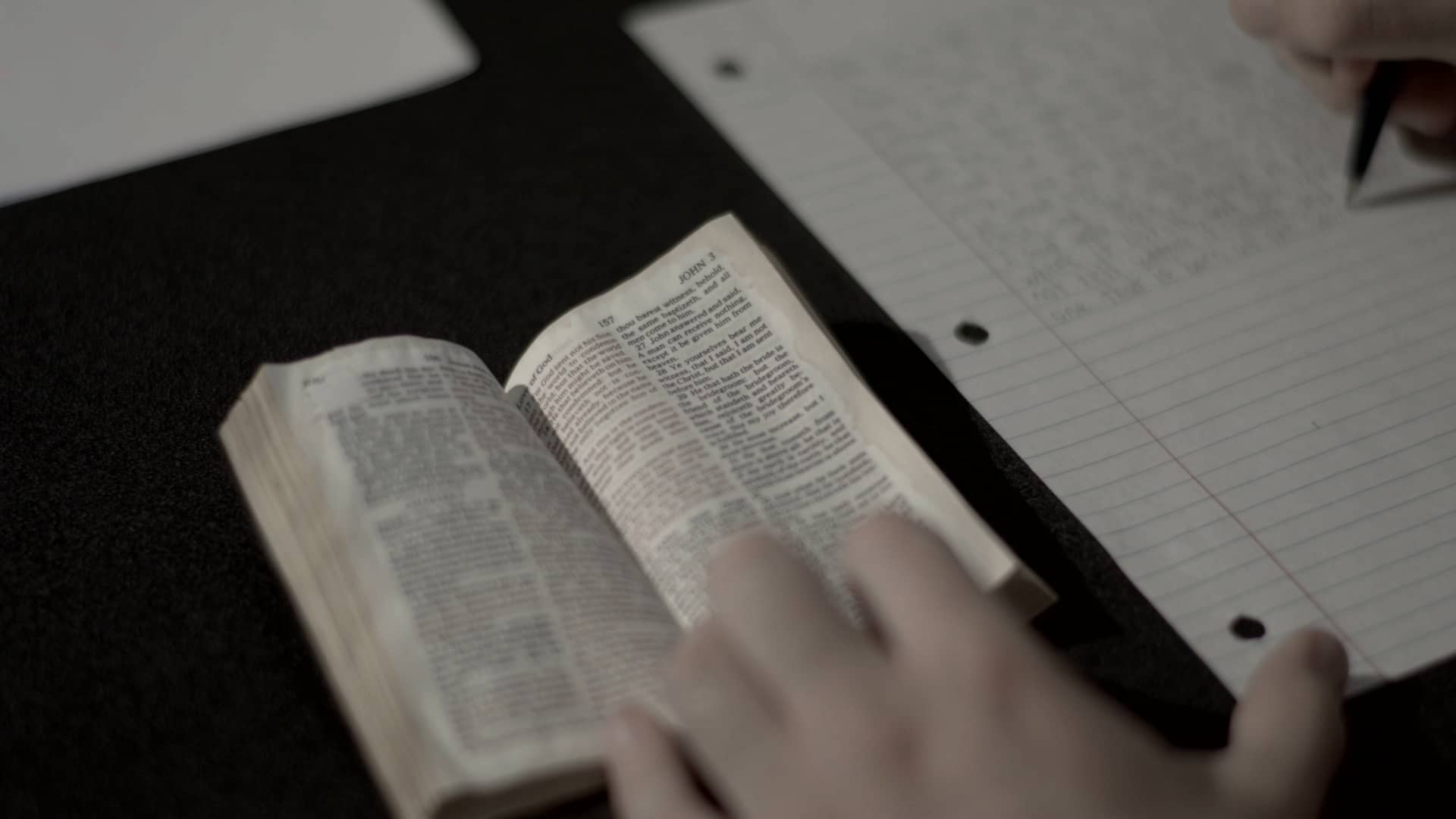 A member of the secret police clandestinely copies the Bible while evading discovery by his coworkers.